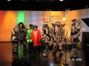 In October of 2009, The Killer Robots appeared on Daytime TV, a nationally syndicated morning show. After receiving a request by an old friend of Mike “Max” McGowan to appear on the show, we began work in anticipation of our television debut. Our manager Ross “Captain Zonar” Parker drilled us through many rehearsals of our chosen single, the Killer Robots “Theme Song.” When not practicing, Samuel “Strobo” Williams set about constructing a large robot for Charles “Trog” Harris to fight while the rest of us performed our song.