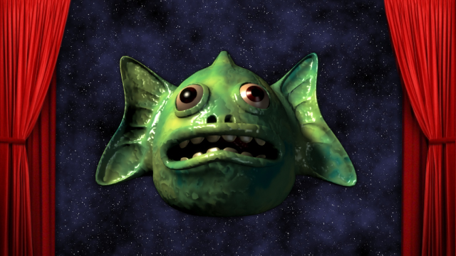 Now normally movies are about 90 minutes long while a few might get away with 70 minutes. I decided I needed an 80 minute movie and so added a lizard-like floating head between the different chapters of the movie. He would recite various philosophical platitudes that really made no sense but somehow related to the story – but not really. He turned out to be a lot of fun though. Folks got a kick out of him popping up at various times through the narrative. Usually by the end he would be mercilessly booed, but that was part of the fun.